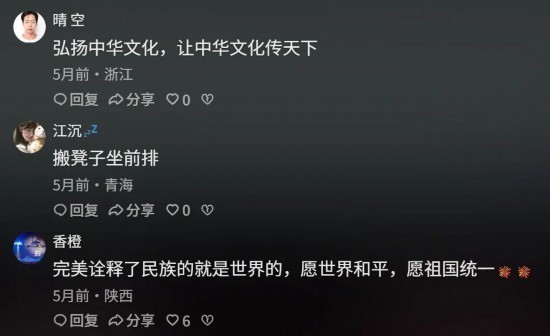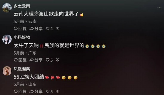 在辩驳区,网友的留言无不败露着对中中文化的自信。这首来吹法螺理弥渡的村歌,在这一刻,成为了中国东谈主共同的民族顾忌。