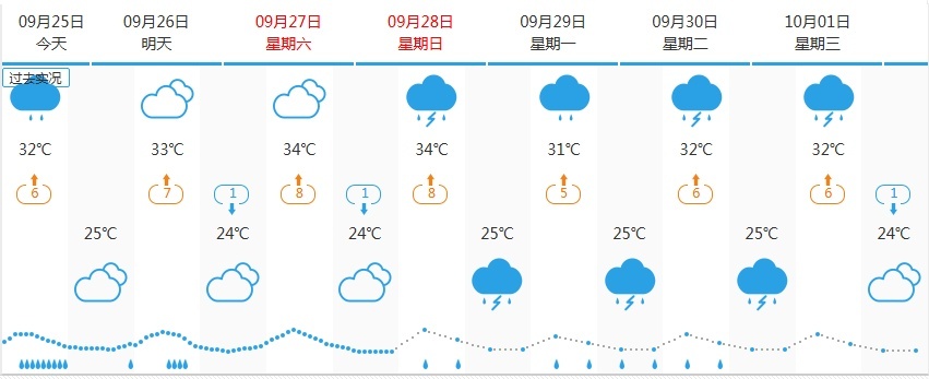 广东省无礼台展望,受“桦加沙”影响,9月25日粤西市县大到暴雨转中到大雨。9月26日-27日,广东大部以多云天气为主,部分市县有(雷)阵雨,白昼最高气温逐步高潮。