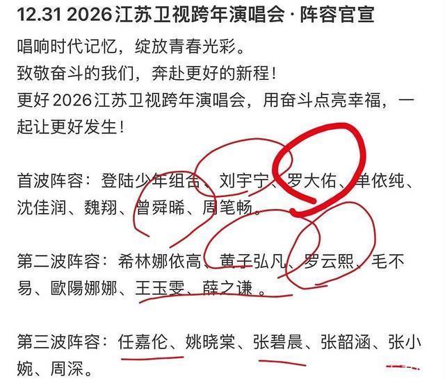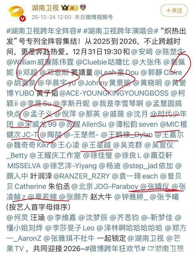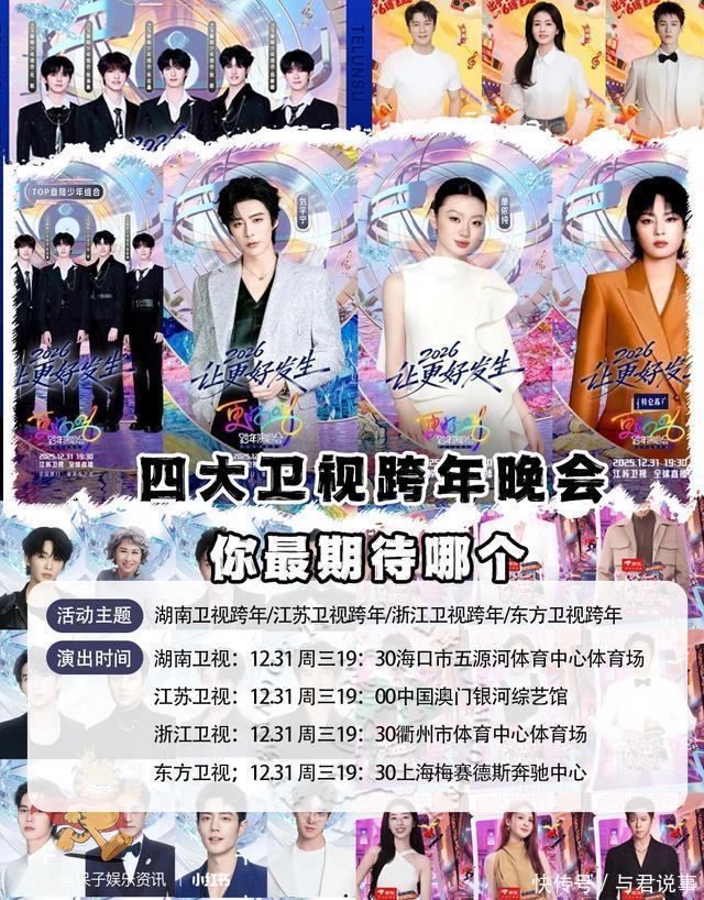 若是说央视春晚是寰球不雅众的“电子大除夜饭”,那12月31日晚的跨大除夜晚会,等于年青群体的“馋嘴盛宴”了。 而各大卫视亦然早就盯上了这块“黄金战场”,2026跨年晚会名单一曝光,顺利开启“伟人打架”花样,此次湖南台还能赢吗?