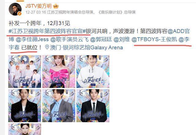 江苏卫视:靠营销造氛围,实力派撑场 情感被东方卫视占了,流量被湖南卫视抢了,留给其他卫视的发扬空间如实未几。但江苏卫视有个杀手锏——相等会营销,擅长营造期待感。 别的卫视要么一次性官宣全威望,要么酌定分两波,江苏卫视顺利分红四波官宣,一步步吊足人人的好奇心。