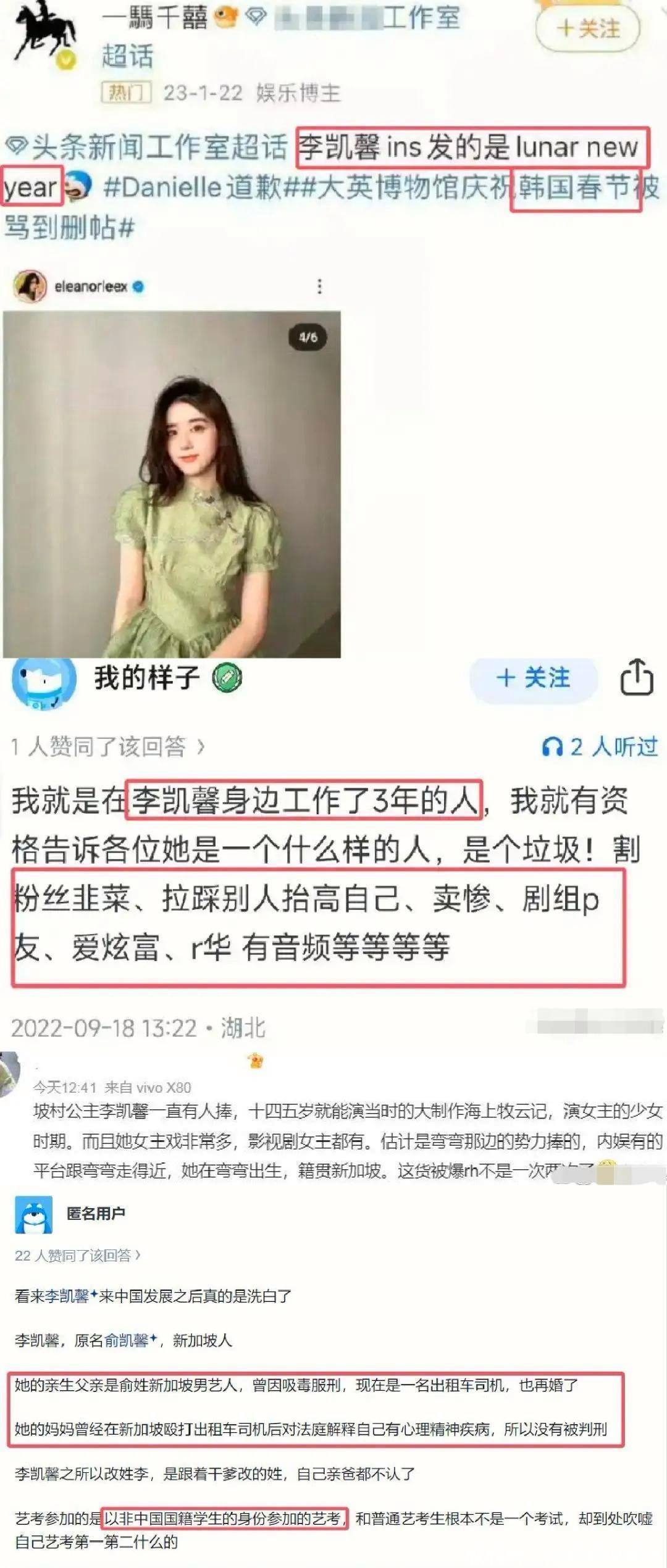 前两天,新加坡籍女明星李凯馨吃我国的饭砸我国的锅。在我国是业有成,成了名得了利,赚了大钱,截止反过来却侮辱咱们。那势必不行让你不时纵容了。