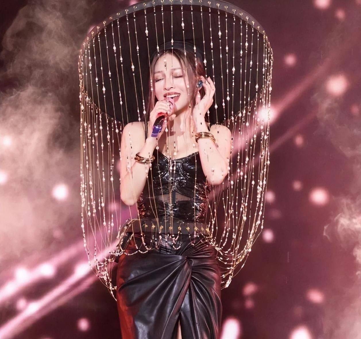 本年四月广州演唱会现场,她以玄色亮片连体装搭配玄色丝袜与皮质长靴登场,V领打算险些蔓延至腰部,紧身剪裁勾画出若有若无的体态弧线。