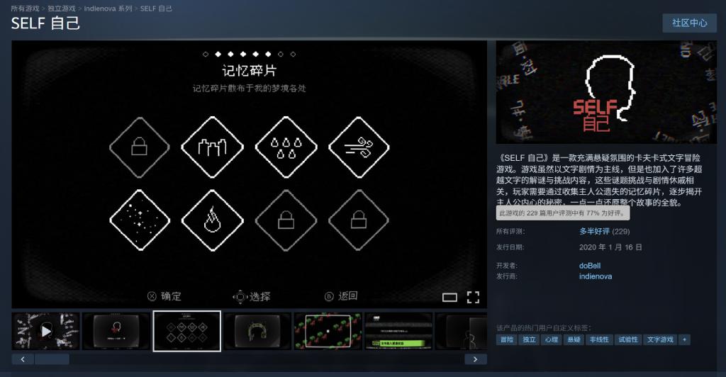 我从我的第一个游戏《SELF 我方》中也获取了一定的正反馈,因为我发现用这种笔墨的状貌,去在游戏中讲故事,这种门径是有东说念主快意给与的,何况从量级来说,比在杂志上发表故事或者写书要受接待得多,因为目前书果真卖不出去。我第一个游戏就被翻译成了英语和日语,如果是一个新东说念主作者何如可能有这种待遇?还有日本玩家写了长评,我借助翻译软件去读的。如果写书的话何如可能第一册书就可以被翻译成日语,还被日本读者读到,那是想都不敢想的事情。