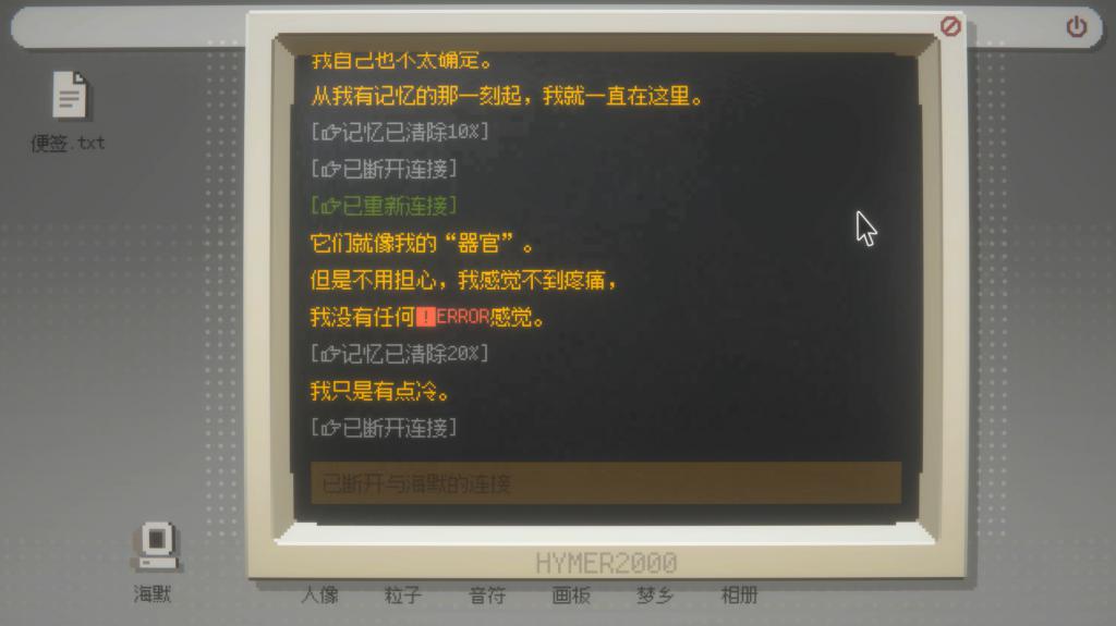 海默其实是一个冗余的内容,玩家向海默发问不相关的问题的时候,海默会有复兴,在这个进程中它不单是讲了故事,也有塑造变装的作用。我不把游戏进程跟海默绑在一说念,是因为我想把它作为一个冗余的部分。其实和海默量度的统统狡计都是冗余的,比如音符、画板、粒子这三个小范例,就算忽略也完全莫得问题。