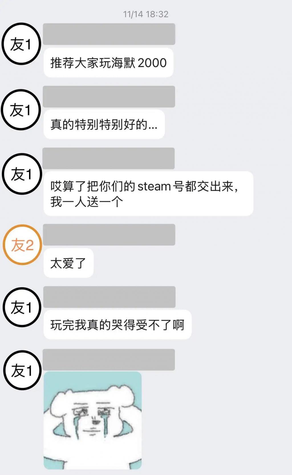 游戏新知最启动眷注到《海默 2000》这款游戏,是因为一又友的力荐。尤其让游戏新知感到奇怪的是,这位一又友也算得上博览群游,却破防成这个形状。