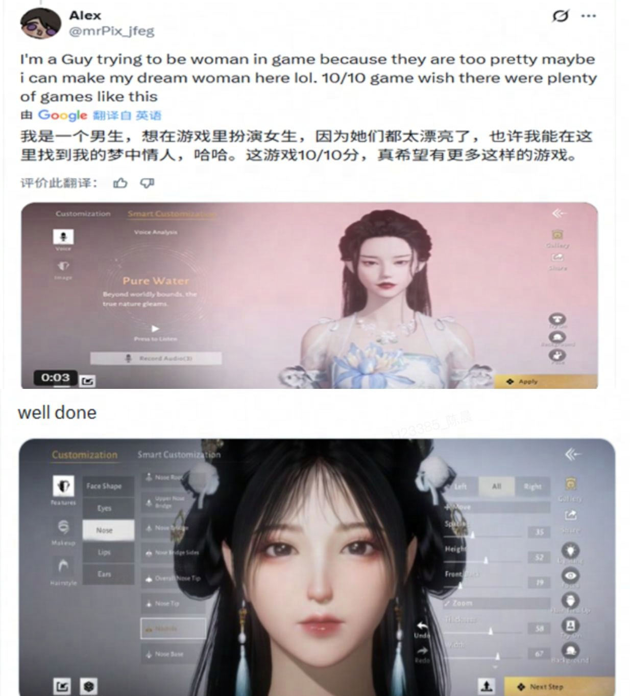 移动端上线后,“AI持脸”功能在外火柴爆出圈。玩家仅需上传一张像片或录制一段语音,系统便能智能生成拟真且“千东谈主千面”的变装形象,招引了广大玩家奋勇尝试。部分外洋玩家初度尝试为我方打造一个“国风造型”——眉眼间流淌着古典气韵,风雅的传统发饰点缀其间,易如反掌齐蕴涵东方神韵,他们纷繁给出“太漂亮了!”“这十足就是我思要的变装”的粗莽评价。这一立异不仅大幅镌汰了变装定制的门槛,更悄然成为传播登第审好意思的新窗口。