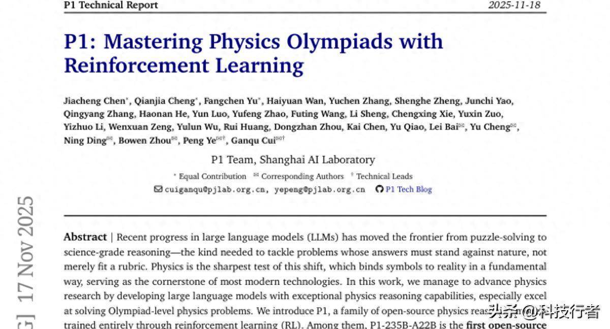 这项由上海AI实验室P1团队完成的打破性接头发表于2025年11月,论文编号为arXiv:2511.13612v1。接头的主要安逸东谈主包括陈嘉诚、程乾嘉、于方晨等多位接头者,他们开荒出了名为P1的开源物理推理模子系列。这是首个能在最新海外物理奥林匹克竞赛(IPhO 2025)中得回金牌的开源AI模子,标志着AI在科学推理范围达到了新的里程碑。 物理学一直被以为是锻真金不怕火AI科学推理能力的最严苛方法。与数学或编程不同,物理问题需要将抽象的标识与现实宇宙的物理定律细巧诱骗,这种诱骗要求模子不