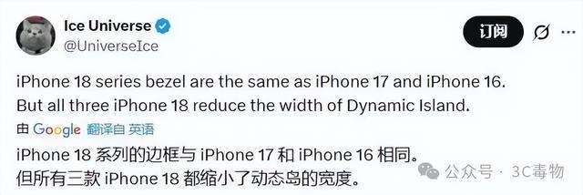 有网友发文暗示,iPhone18系列的屏幕边框和上一代琢磨。