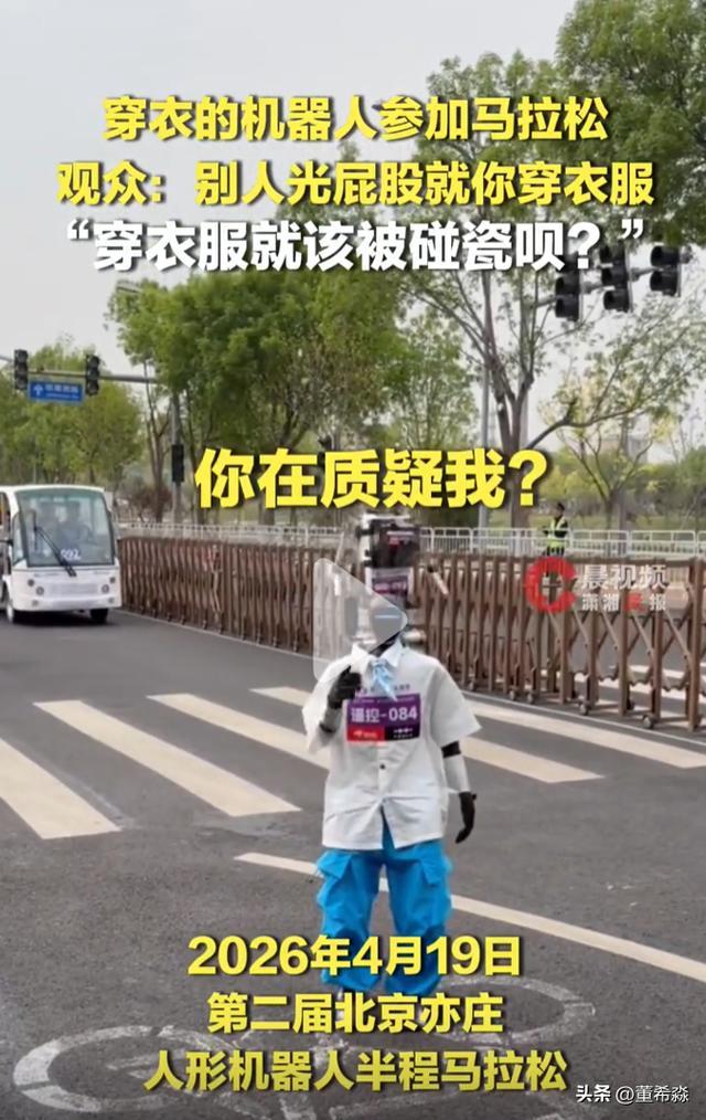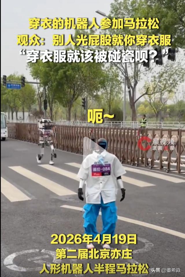 4月19日,2026北京亦庄东说念主形机器东说念主半程马拉松赛场上,一个“穿穿着的机器东说念主”激发了全场最明锐的不雅众辣评——“就你穿穿着”。短短五个字,笑声未落,却让不少东说念主堕入了奥妙的停顿。